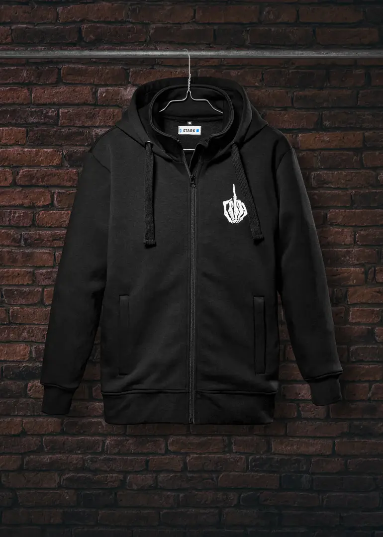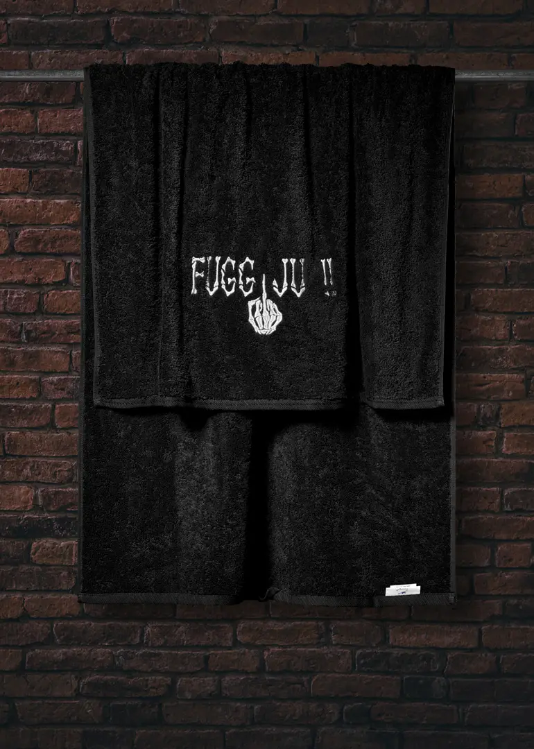 Bei fugg-ju findest du schwarze Kleidung mit Charakter: Hoodies, T-Shirts, Sweatjacken, Polos, Socken und Handtücher – minimalistisch im Design, stark in der Aussage.